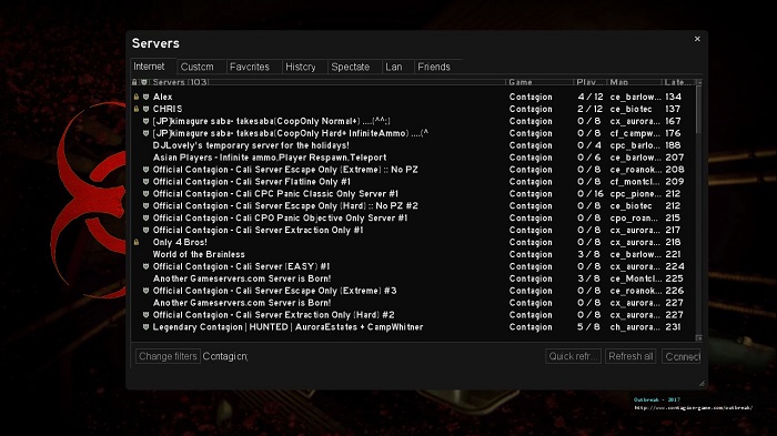 เซิร์ฟเวอร์หลัก (Official Server) ที่เป็นของเกมเอง รวมไปถึงเราสามารถเปิดเซิร์ฟเวอร์ของตัวเองได้เช่นกัน ซึ่งเราสามารถเข้าร่วมเกมผ่านทางรายชื่อเซิร์ฟเวอร์เหล่านี้ได้เลย และเกมรองรับ